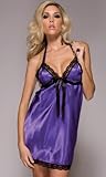 Classic satin look chemise to set the romantic mood! Featuring a plunging neckline and flatter empire line, lingerie is trimmed with black lace. Also available in Silk Rose Red and Gardenia White.