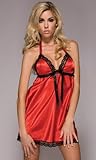 Classic satin look chemise to set the romantic mood! Featuring a plunging neckline and flatter empire line, lingerie is trimmed with black lace. Also available in Gardenia White and Iris Purple.